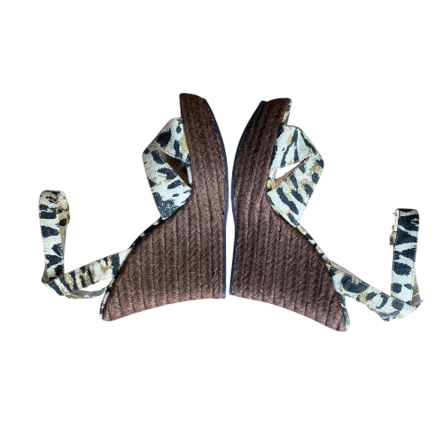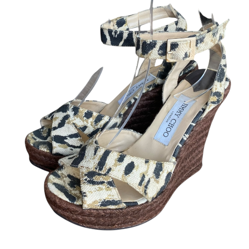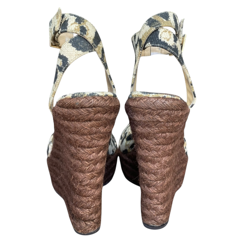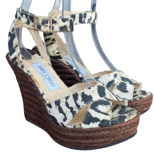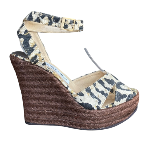 JIMMY CHOO Phoenix Animal Print Canvas Espadrille Wedge Sandals, Size 39