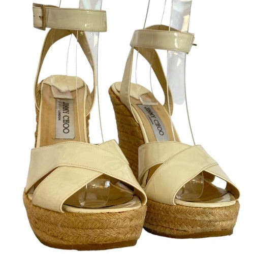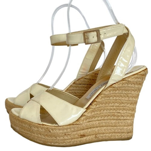 JIMMY CHOO Phoenix Espadrilles White Patent Leather Wedge Sandals, Size 41