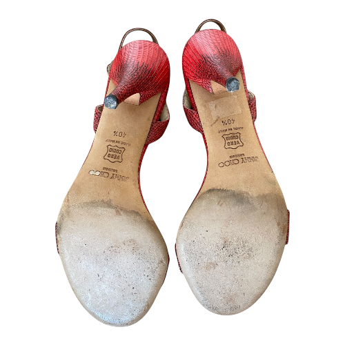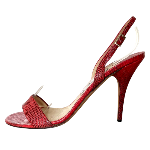 JIMMY CHOO Red Embossed Lizard Slingback Strappy Sandals, Size 40.5