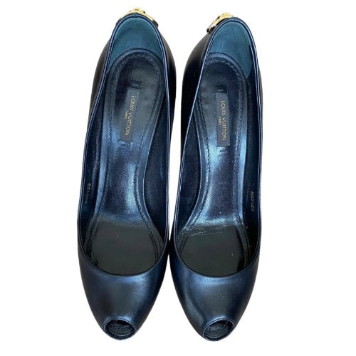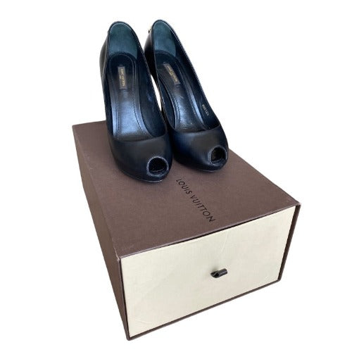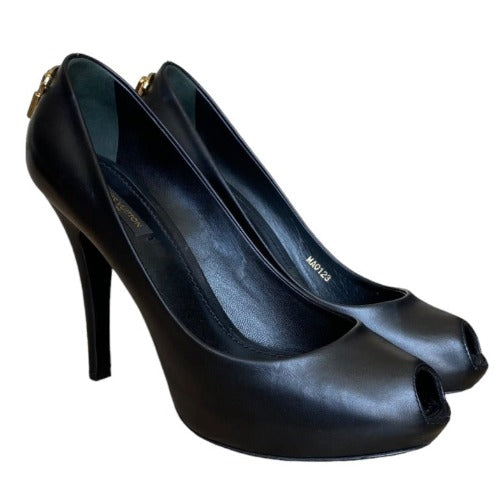 LOUIS VUITTON Black Smooth Calfskin Leather Oh Really! Peep Toe Pumps, Size 39