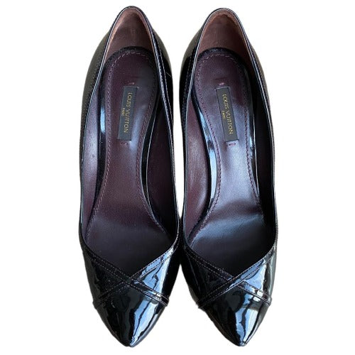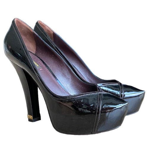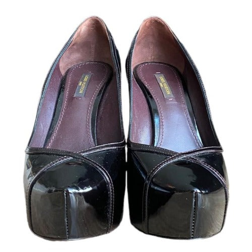 LOUIS VUITTON Maroon Color Patent Leather Pointed Toe Platform Pumps, Size 39