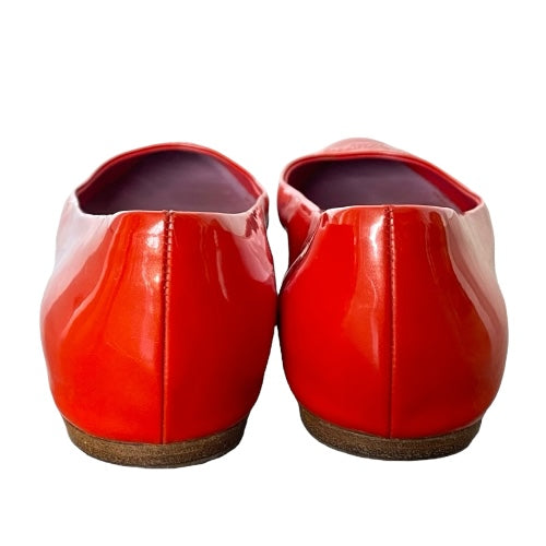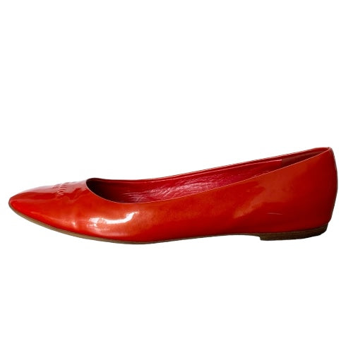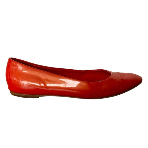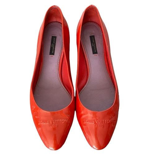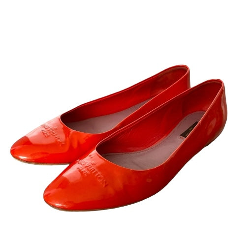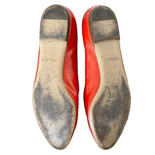 LOUIS VUITTON Orange Patent Leather Logo Embossed Ballet Flats, Size 39.5