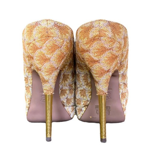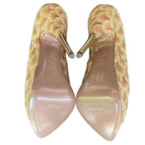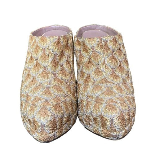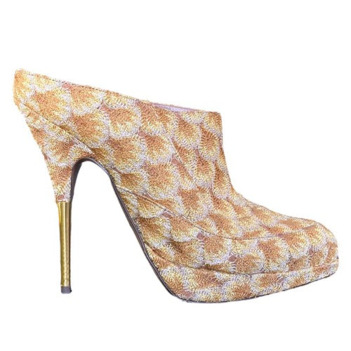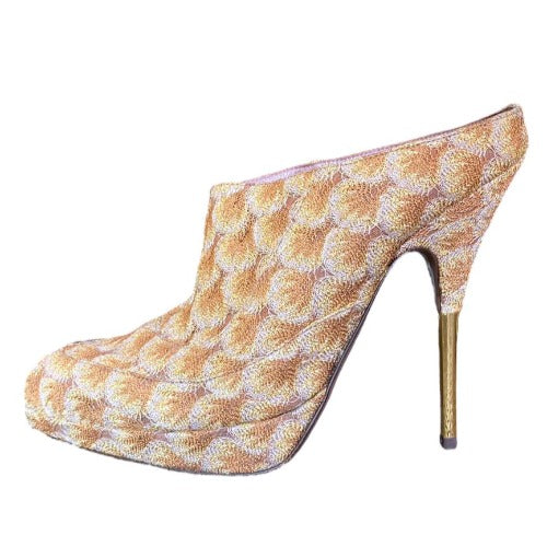 MISSONI Beige & Brown Knit Fabric Platform Mules Heeled Sandals, Size 37