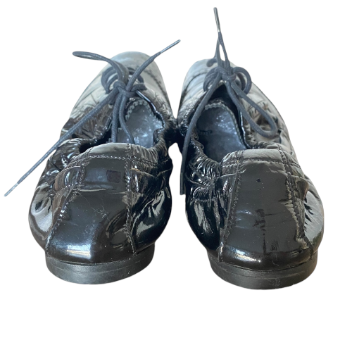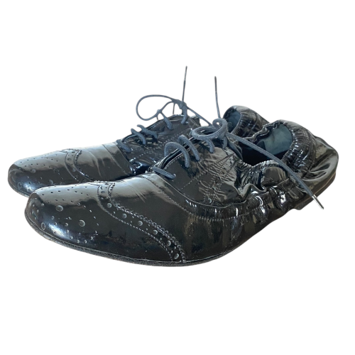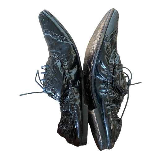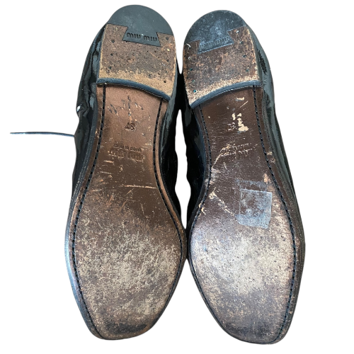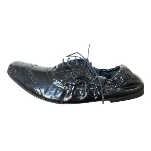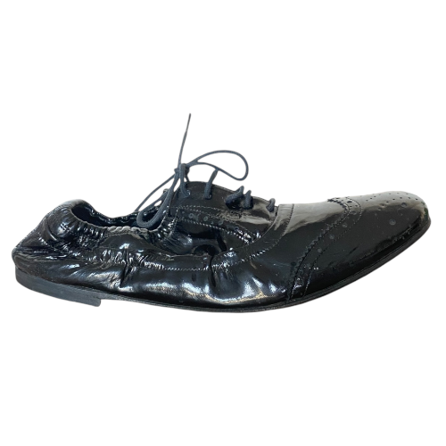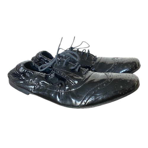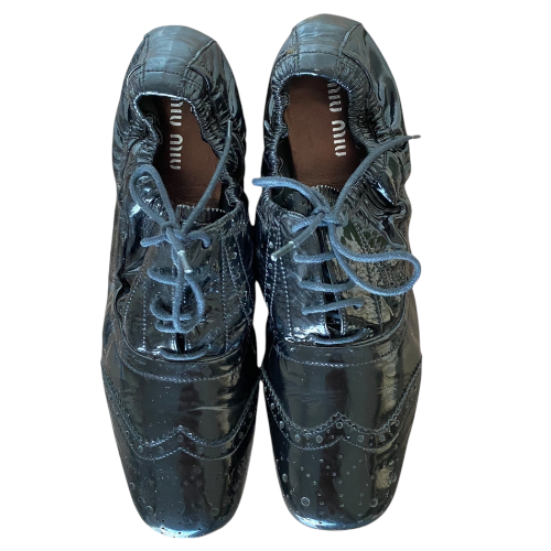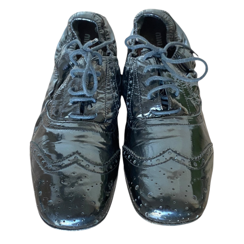 MIU MIU Black Patent Leather Perforated Elastic Back Brogue Oxford, Size 37