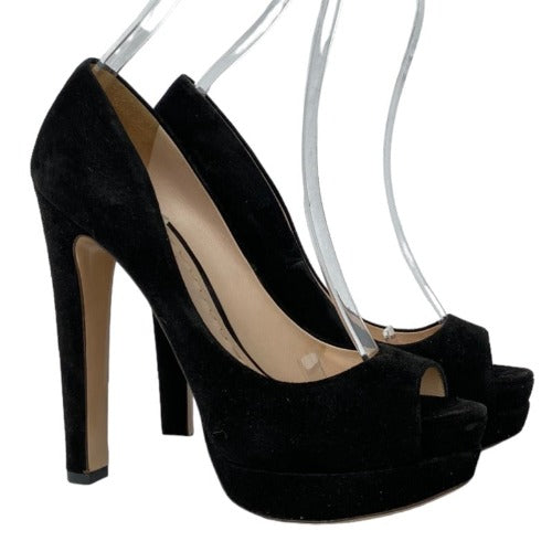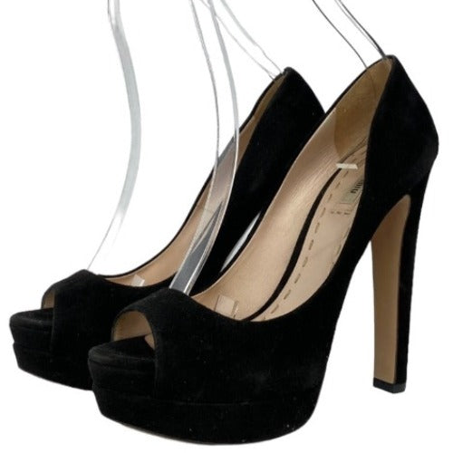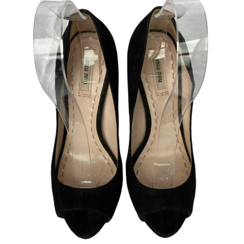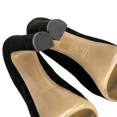 MIU MIU Black Suede Platform Peep Toe Pumps, Size 39