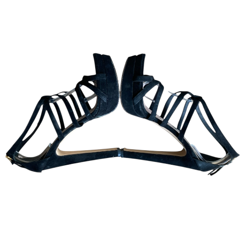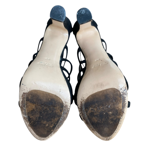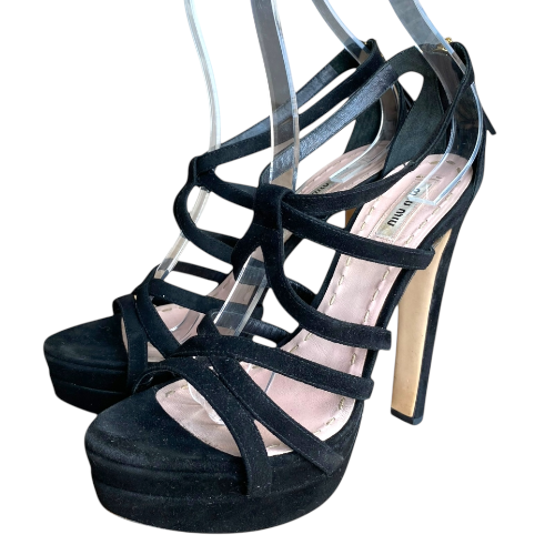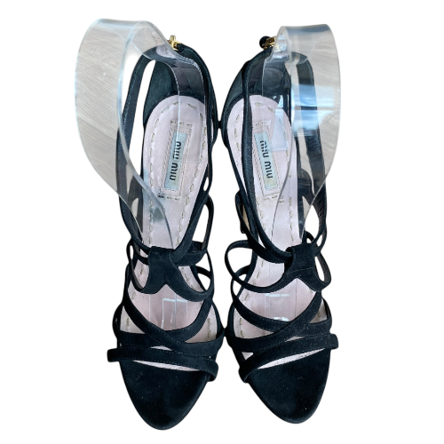 MIU MIU Black Suede Strappy Open Toe High Heel Sandals, Size 39