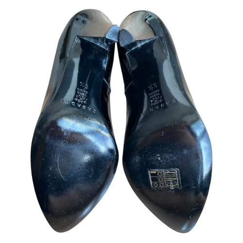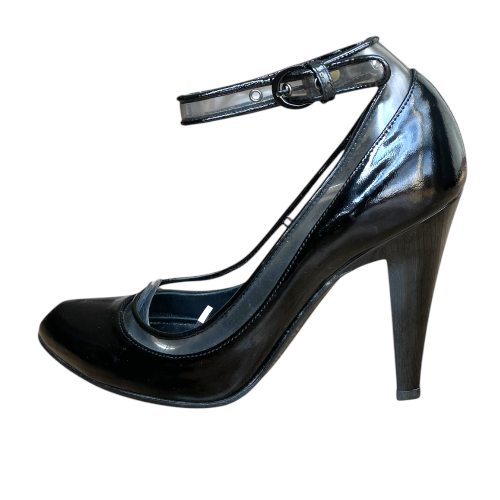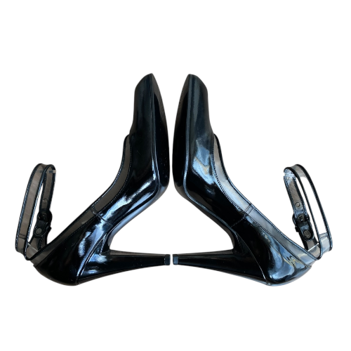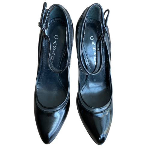 NEW CASADEI Black Patent, PVC Trim Pointed Toe Ankle Strap Pumps, Size 35.5