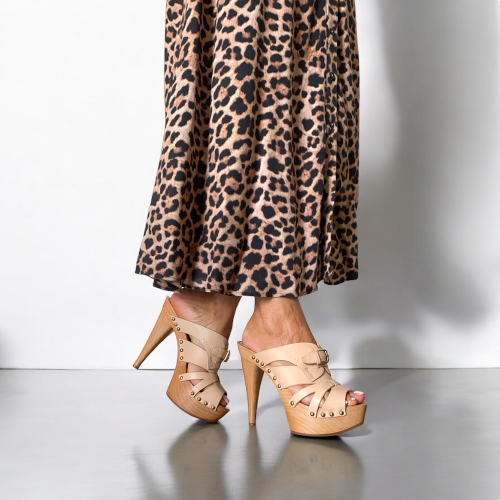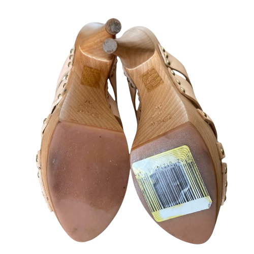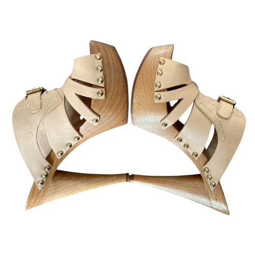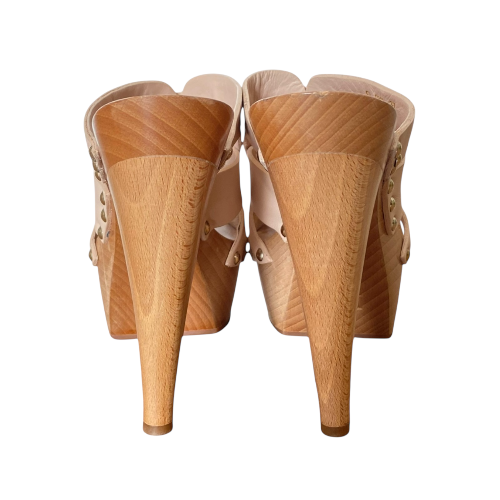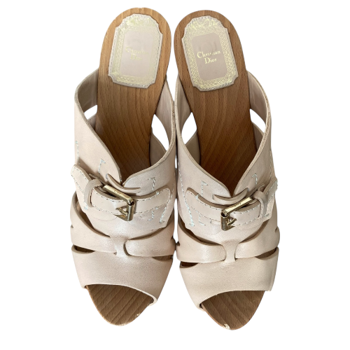 NEW CHRISTIAN DIOR Poudre Leather Strappy, Wood Clog Platform Mules, Size 37