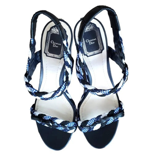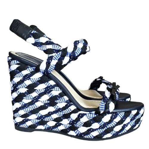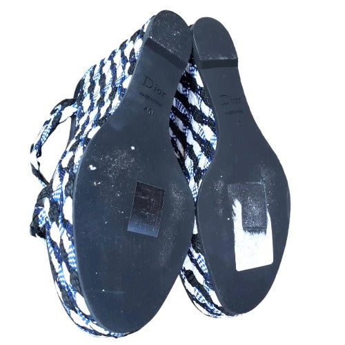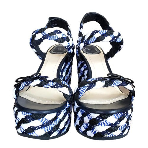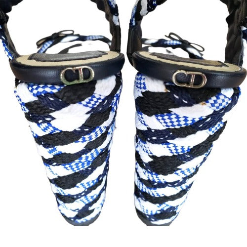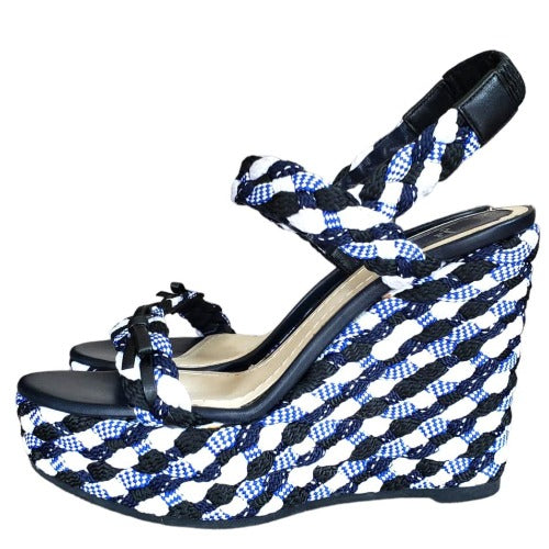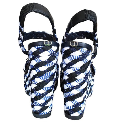 NEW DIOR Tri Color Braided Fabric and Leather Open Toe Wedge Sandals, Size 40