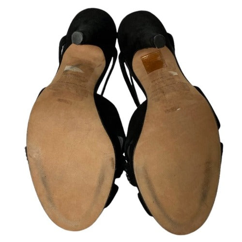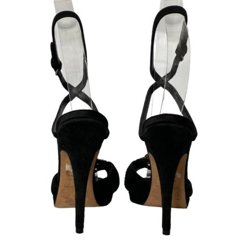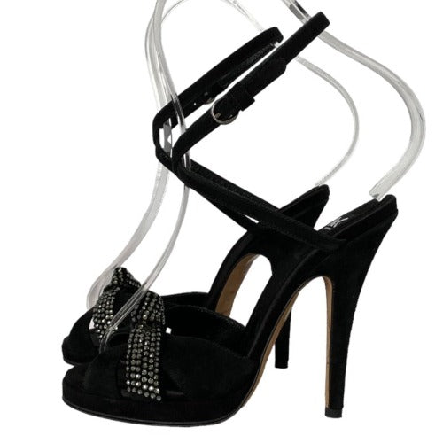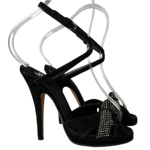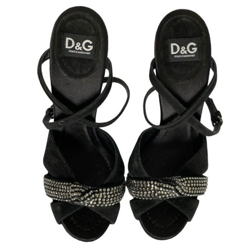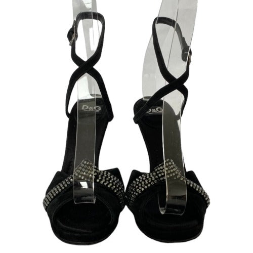 NEW DOLCE GABBANA Black Rhinestone Suede Ankle Strap Heeled Sandals, Size 36