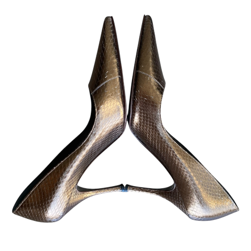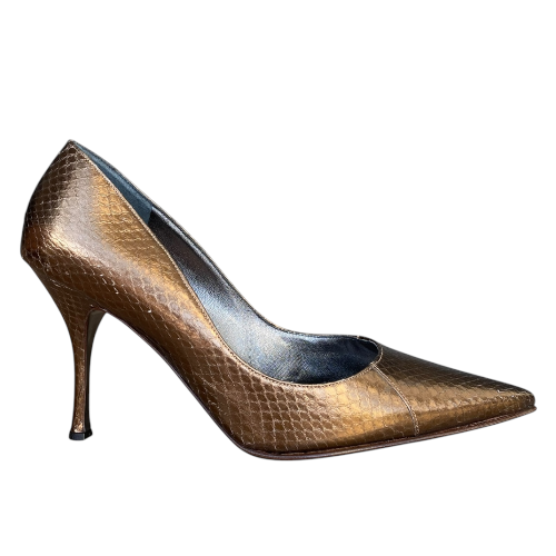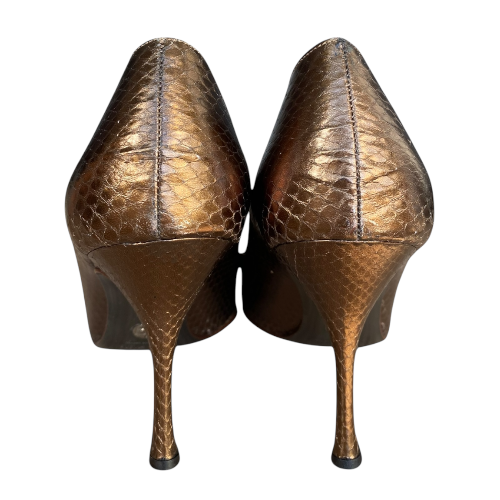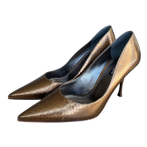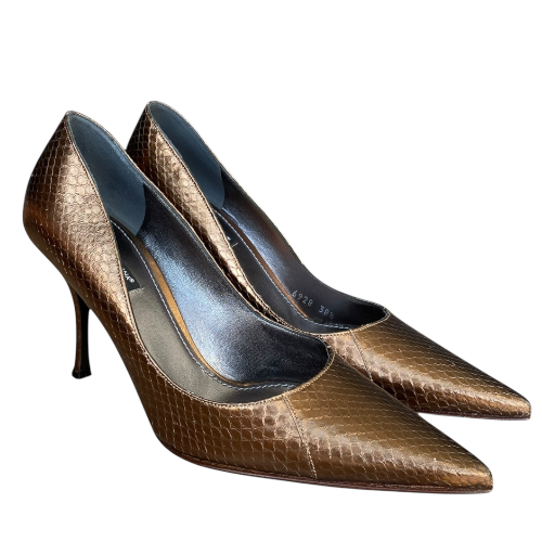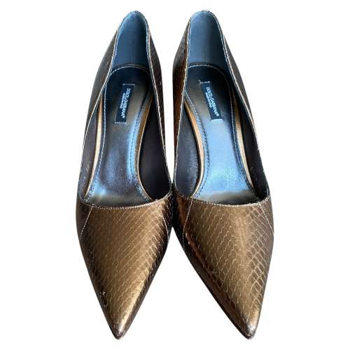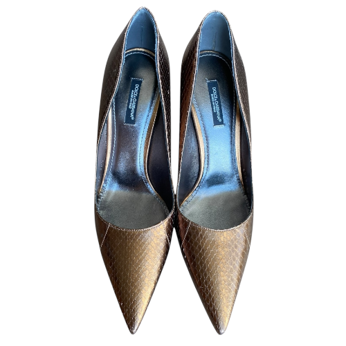 NEW DOLCE & GABBANA Metallic Brown Python Leather Pointed Toe Pumps, Size 38.5