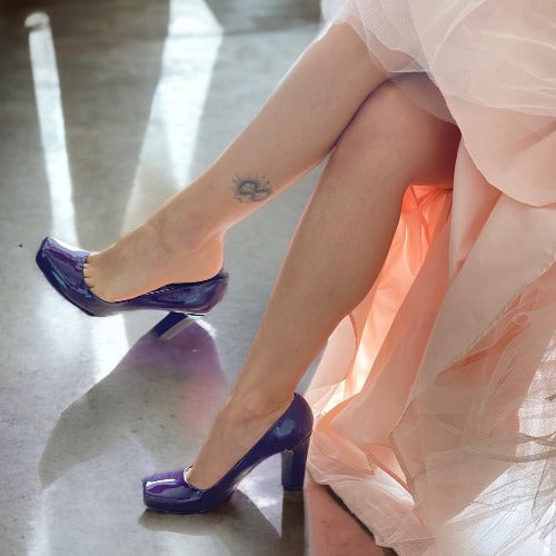 NEW DOLCE & GABBANA Purple Patent Leather Block Heel Square Toe Pumps, Size 40