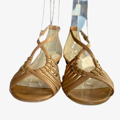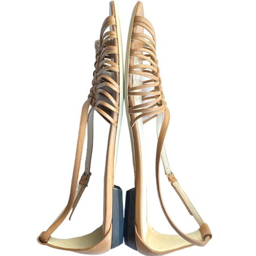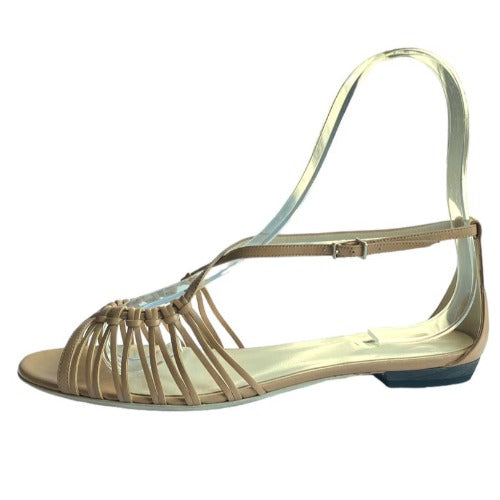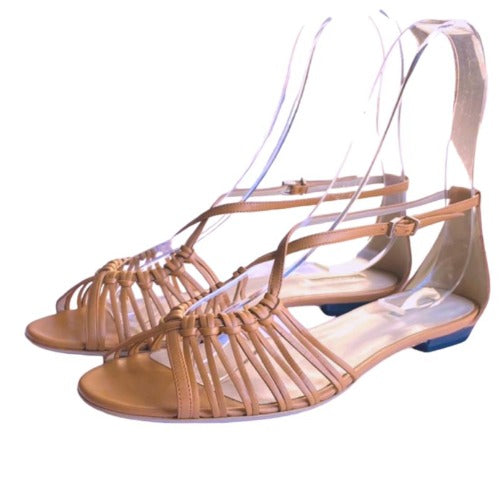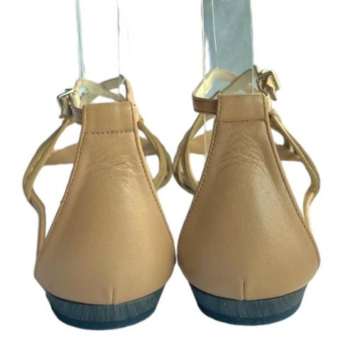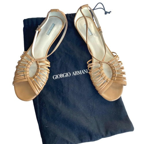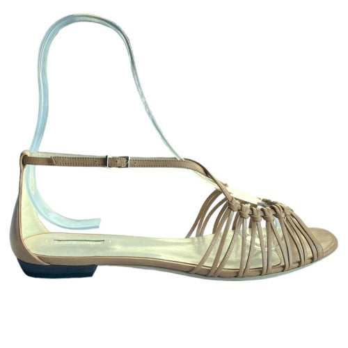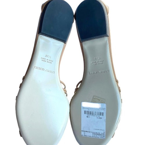 NEW GIORGIO ARMANI Beige Leather Strappy Ankle Strap Flat Sandals, Size 37.5
