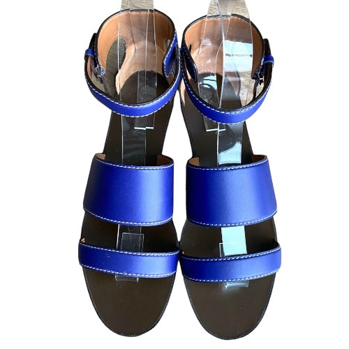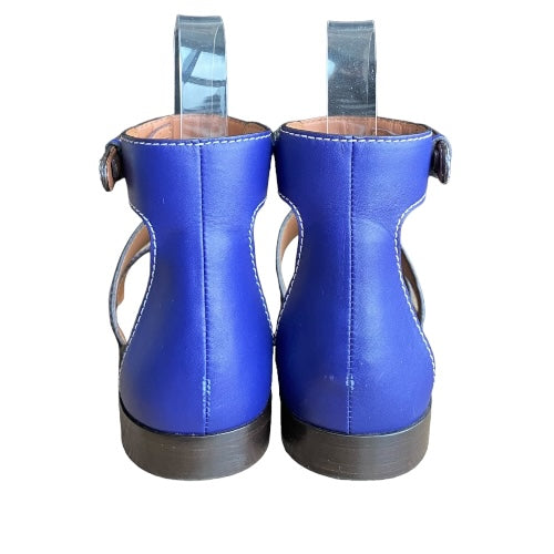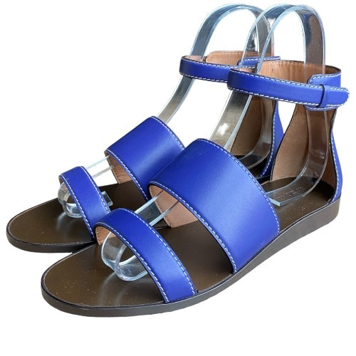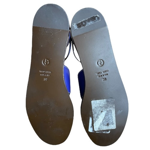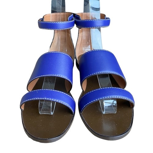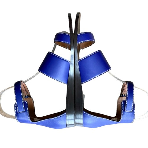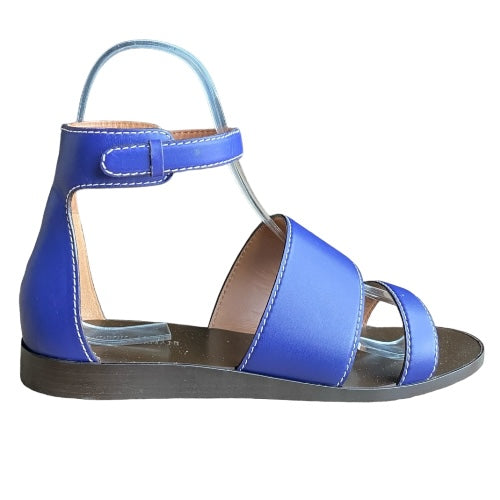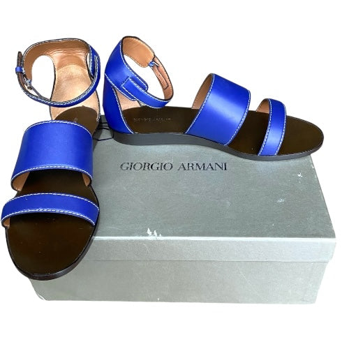 NEW GIORGIO ARMANI Blue Leather Strappy Ankle Strap Flat Sandals, Size 38