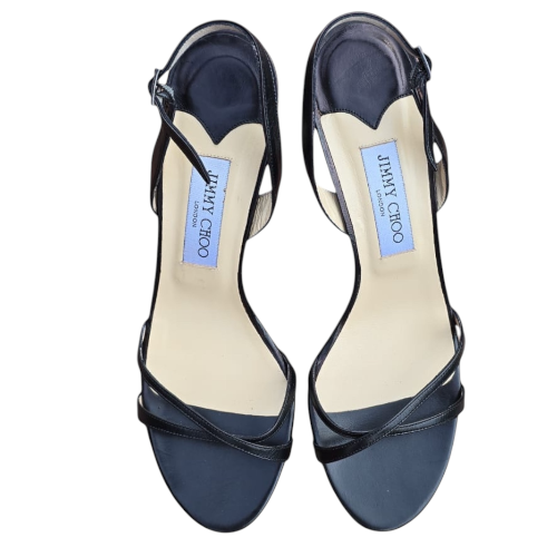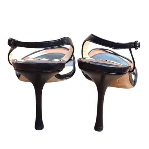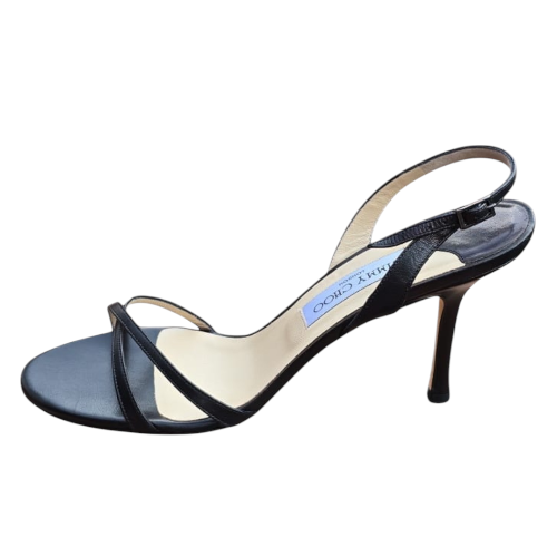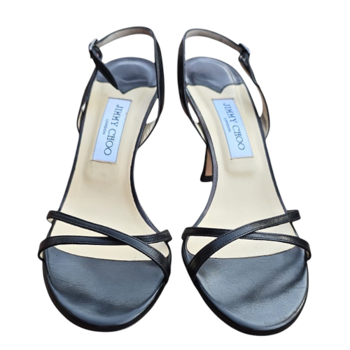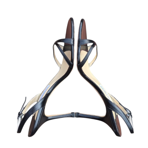 NEW JIMMY CHOO Black Leather Slingback Strappy Heeled Sandals, Size 40.5