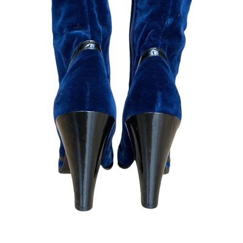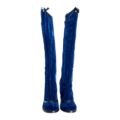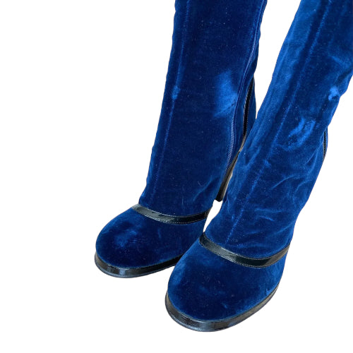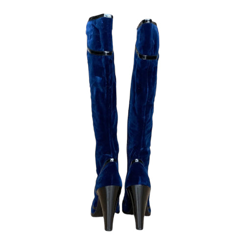 NEW MARC JACOBS Navy Velvet Knee High Boots, Size 41