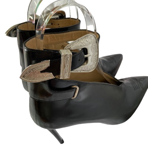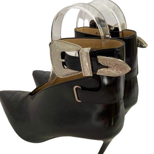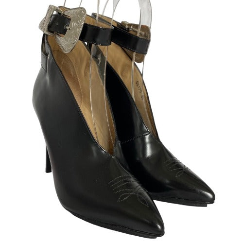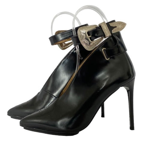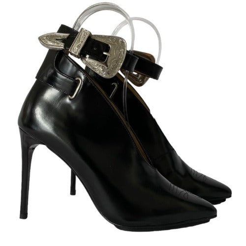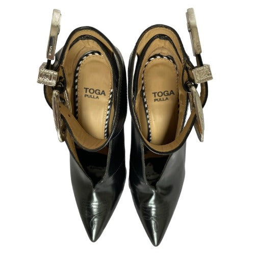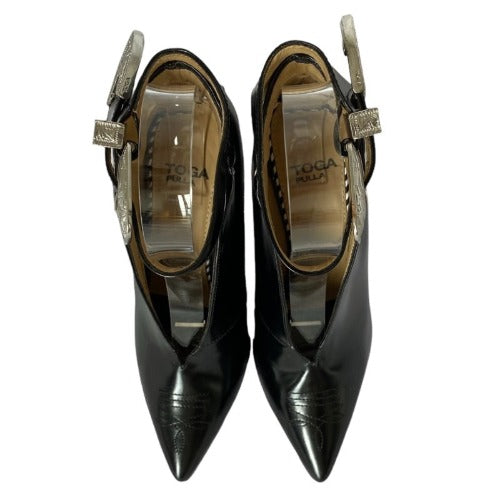 NEW TOGA PULLA Black Leather, Silver Buckle Pointed Toe High Heel Pumps, Size 36