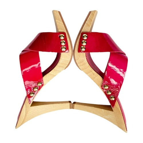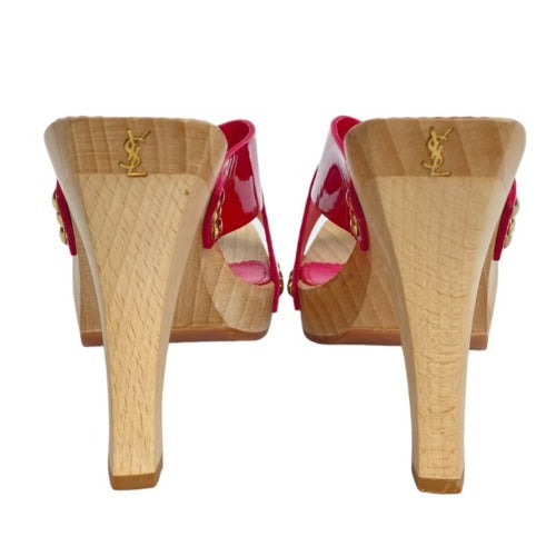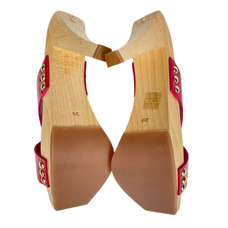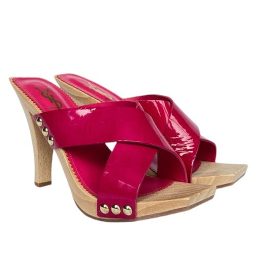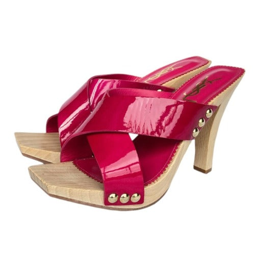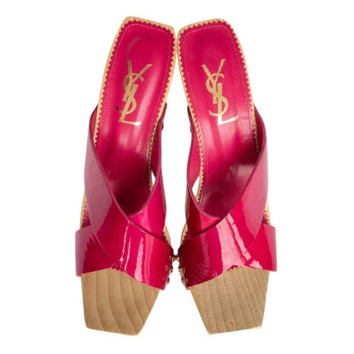 NEW YVES SAINT LAURENT Rive Gauche Pink Patent Leather Lolita Slides Mules, 39