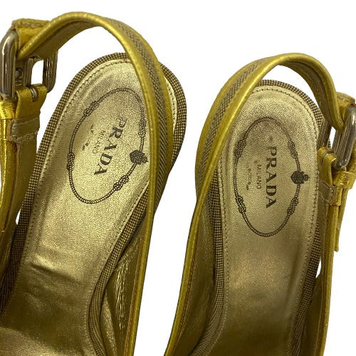 PRADA Beige & Gold Canvas Criss Cross Slingback Espadrille Wedge Sandals, 38.5