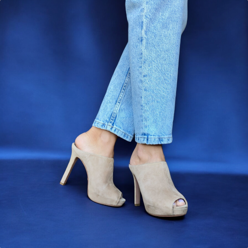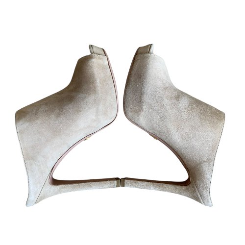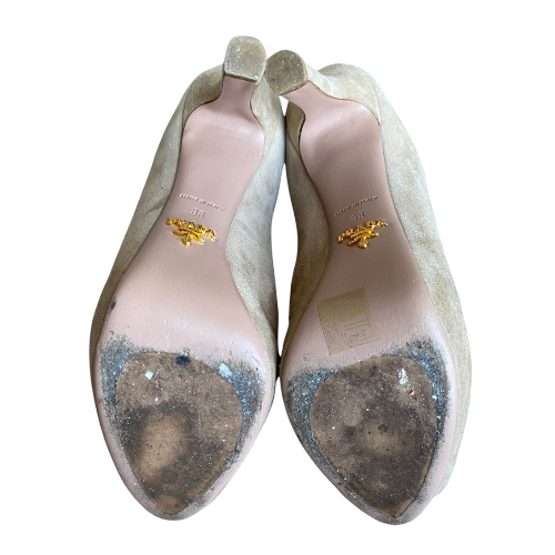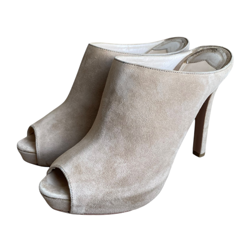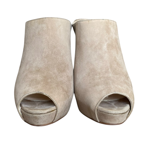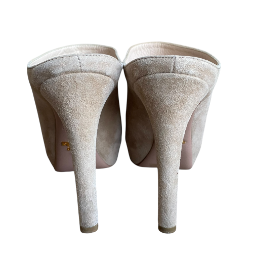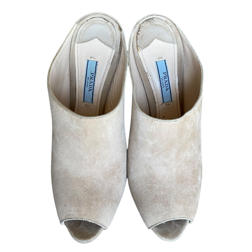 PRADA Beige Suede Open Toe Clog Platform High Heel Mules, Size 38