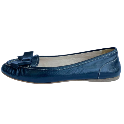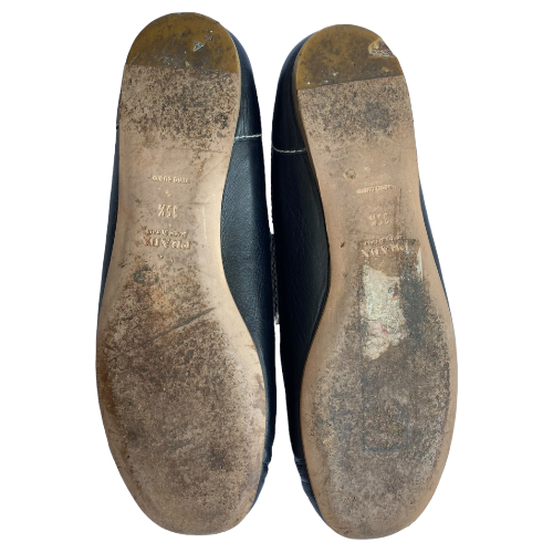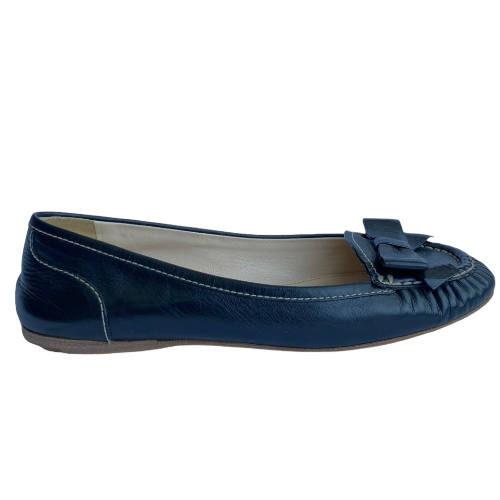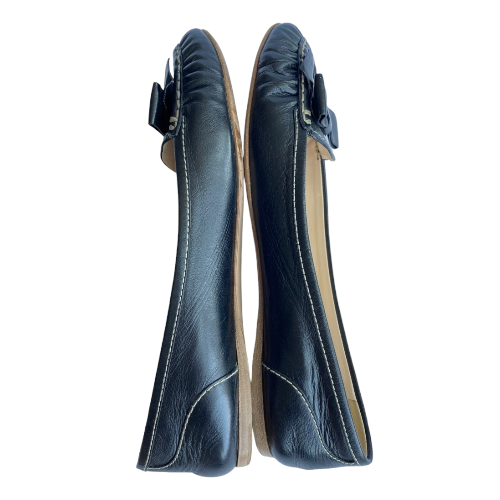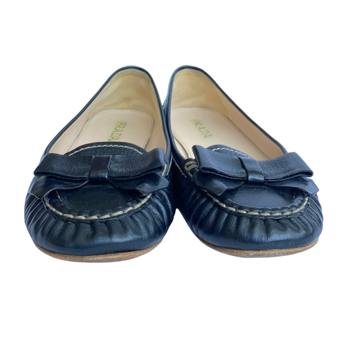 PRADA Black Leather Bow Detail Ballet Flats, Size 35.5