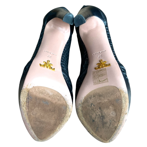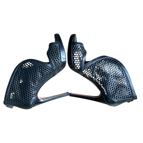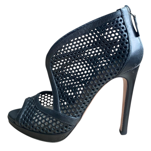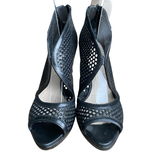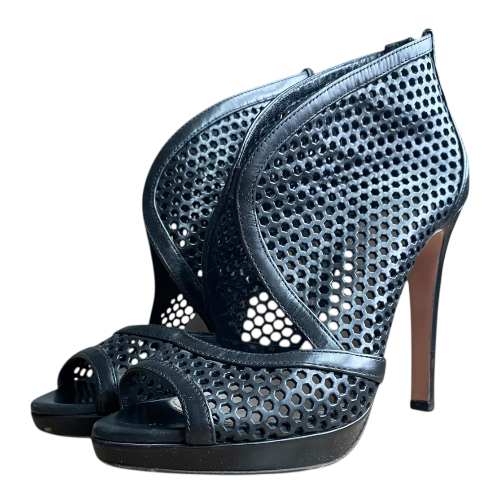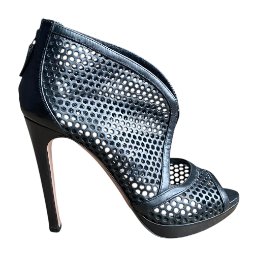 PRADA Black Perforated Leather Peep Toe Booties, Size 37