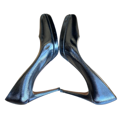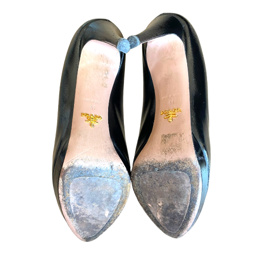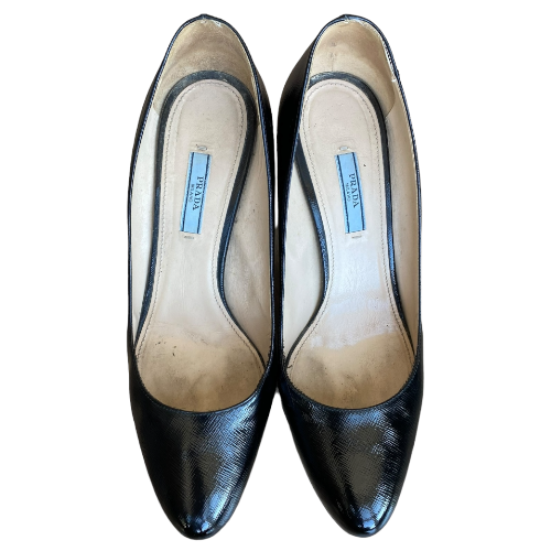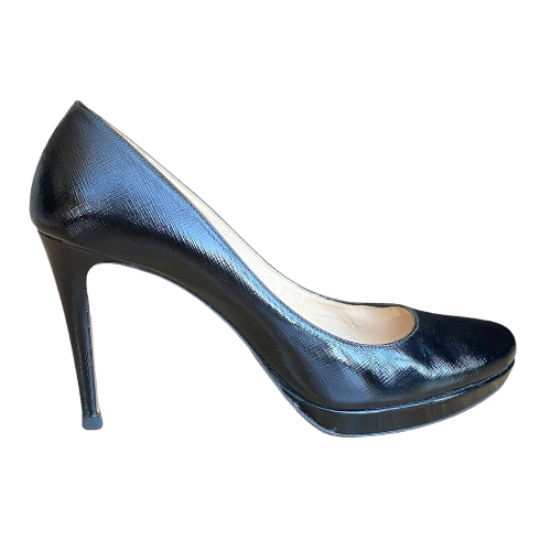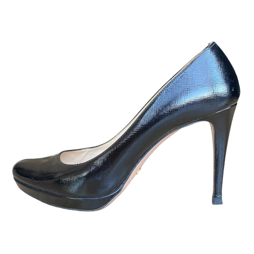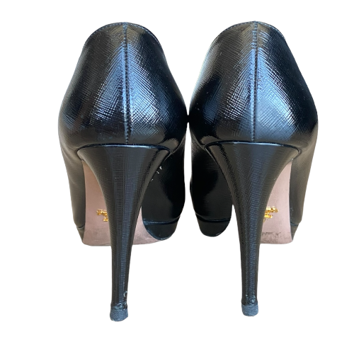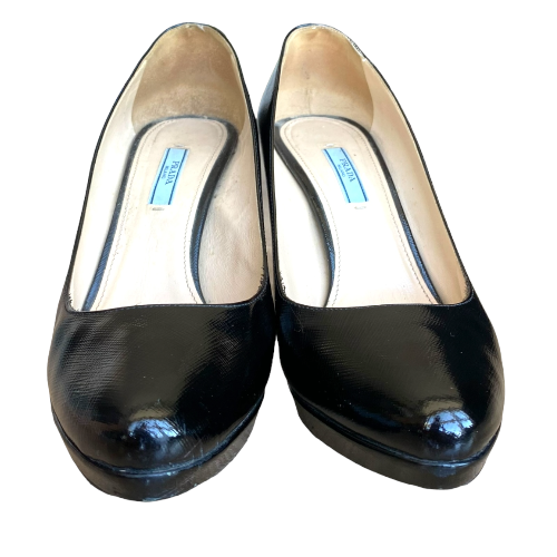 PRADA Black Textured Patent Leather Platform Pumps, Size 41