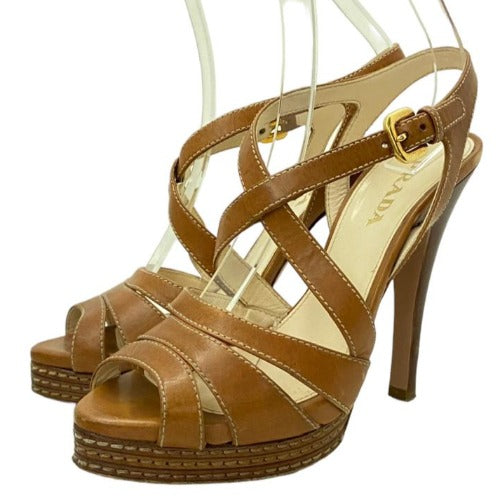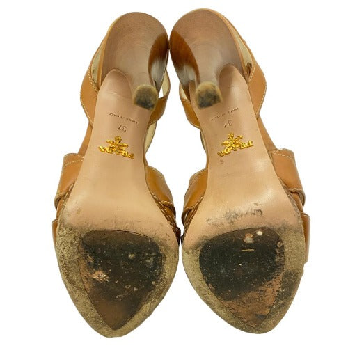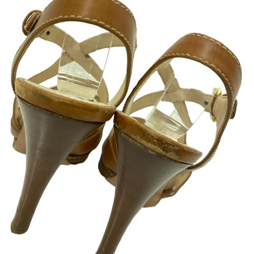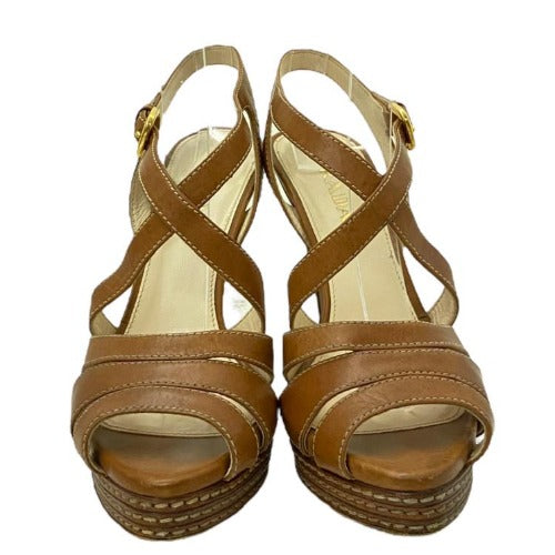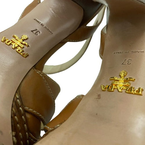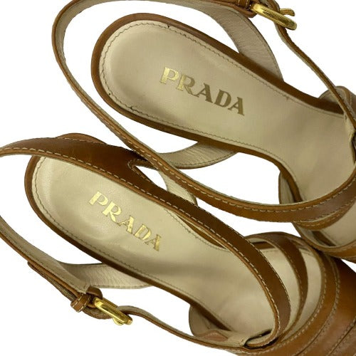 PRADA Brown Leather Strappy Slingback Stitched Platform Sandals, Size 37