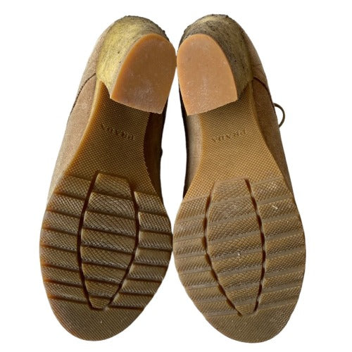 PRADA Linea Rossa Beige Suede Lace Up Ankle Boots, Size 35.5