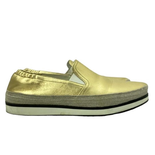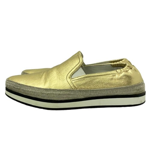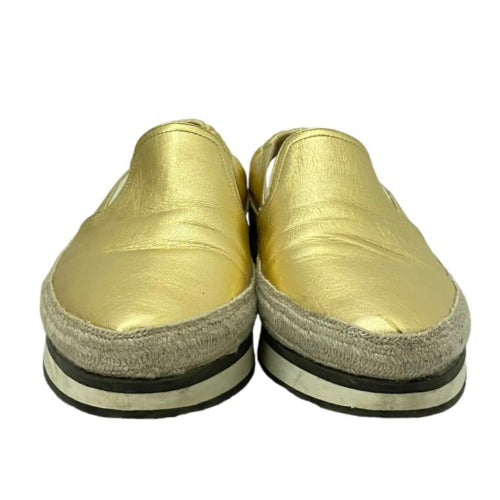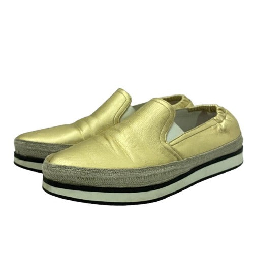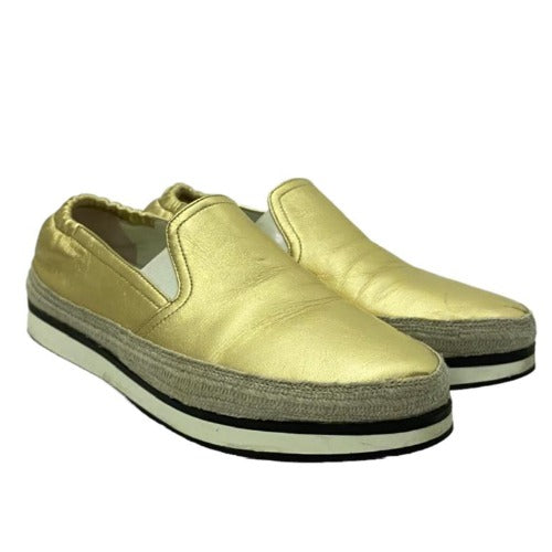 PRADA Metallic Gold Leather Espadrille Flats, Size 36