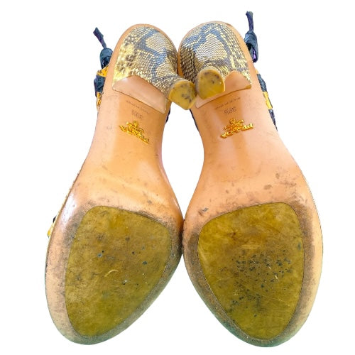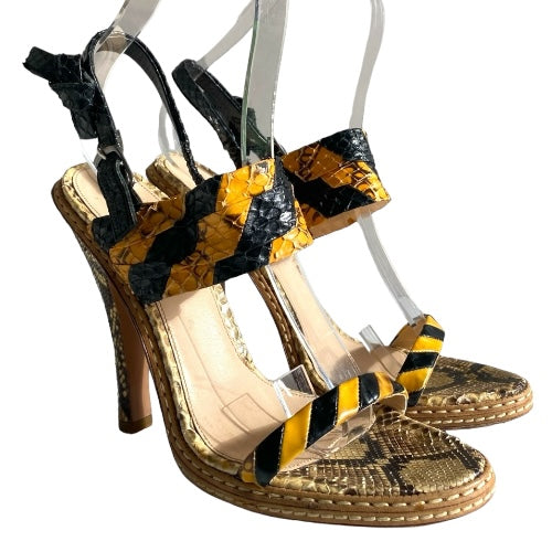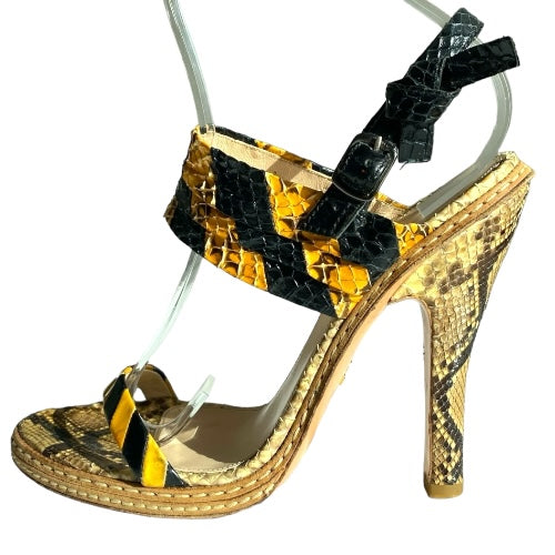 PRADA Multicolor Python Leather Animal Print Strappy Sandals, Size 39.5