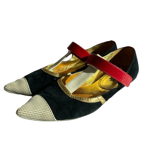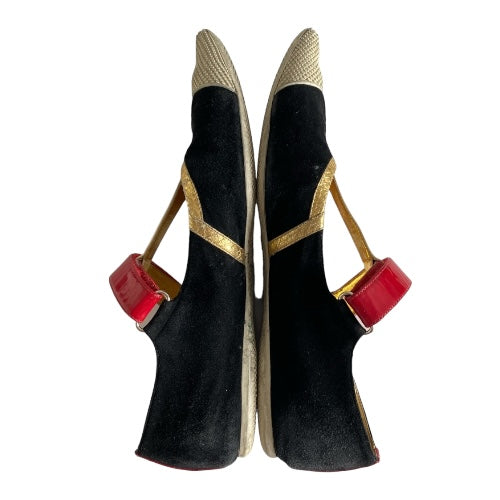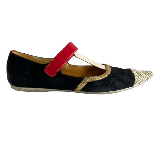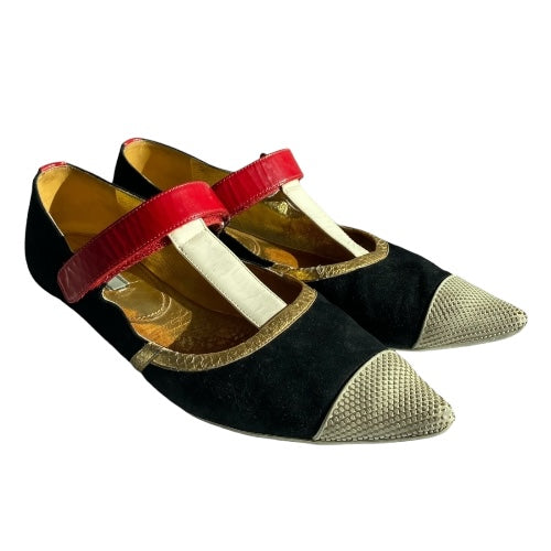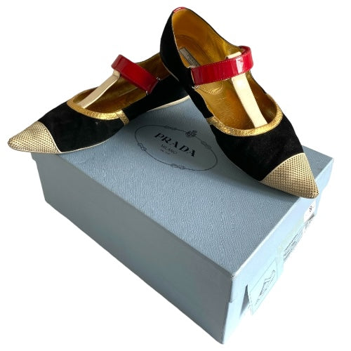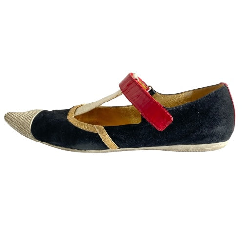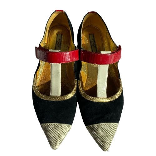PRADA Multicolor Suede and Patent Pointed Toe Ballet Flats, Size 38