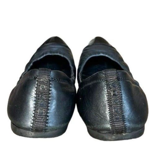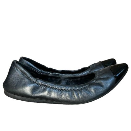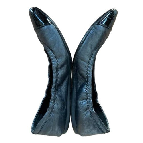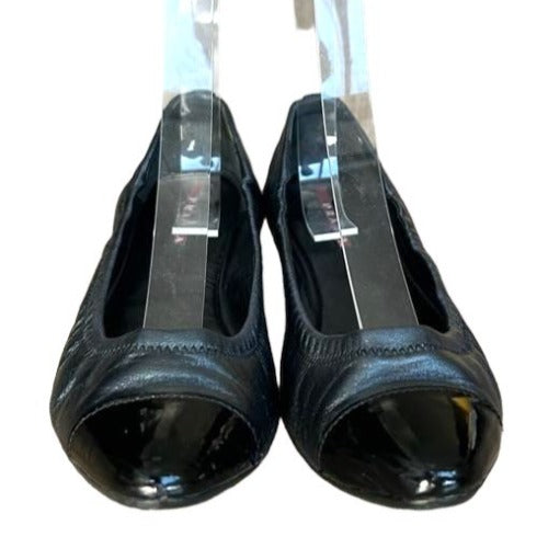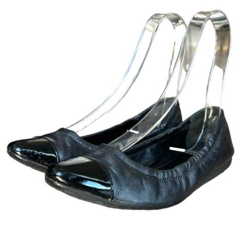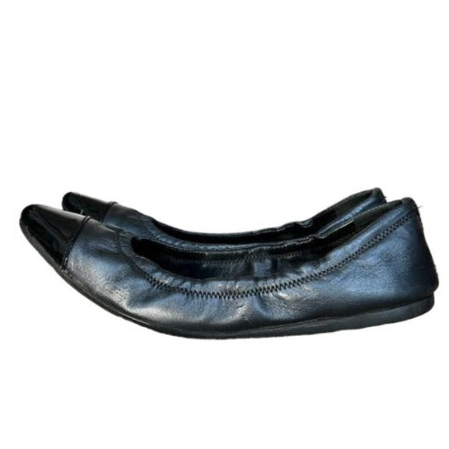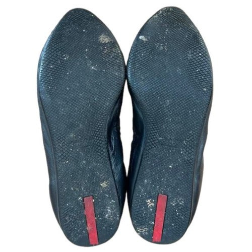 PRADA Sport Black Leather, Patent Leather Cap Toe Ballet Flats, Size 36