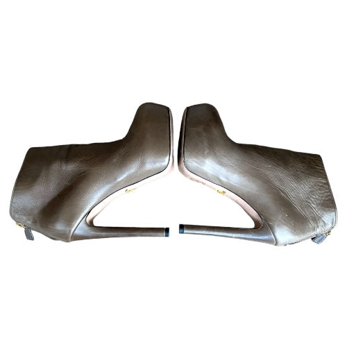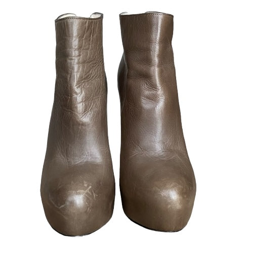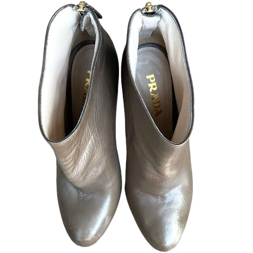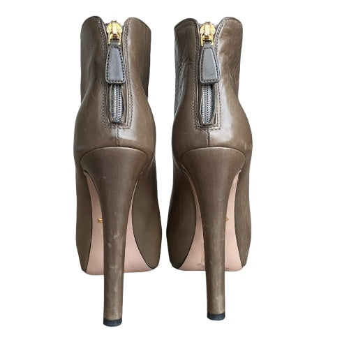 PRADA Taupe Leather Hidden Platform Ankle Booties, Size 36