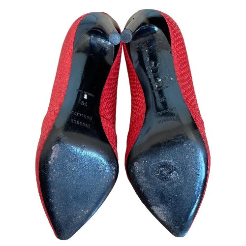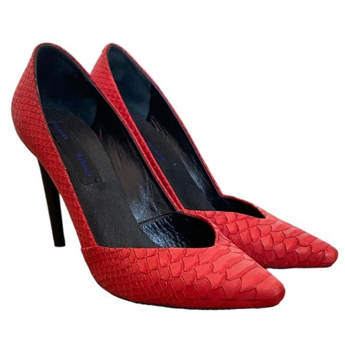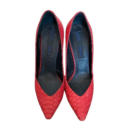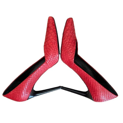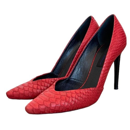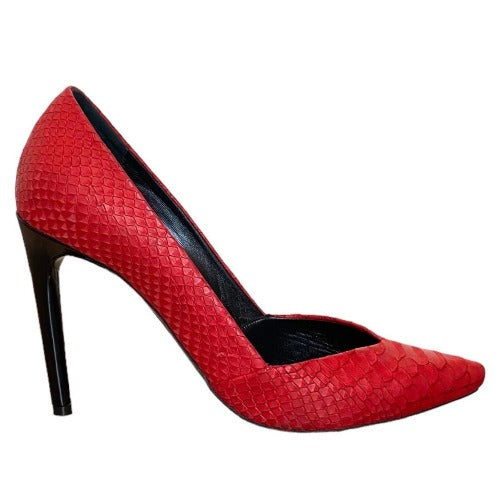 PROENZA SCHOULER Red Python Leather Pointed Toe Patent Heel Pumps, Size 39