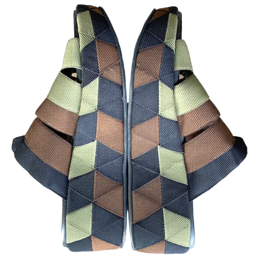 SALVATORE FERRAGAMO Elettra Camo Grosgrain Elasticated Platform Sandals, Size 40