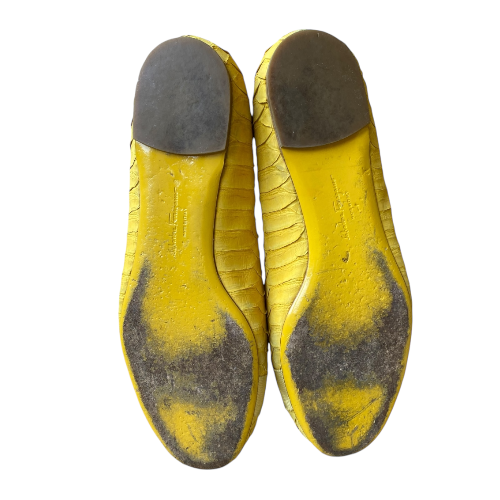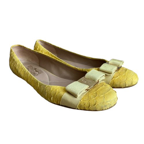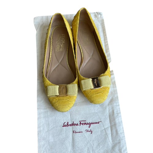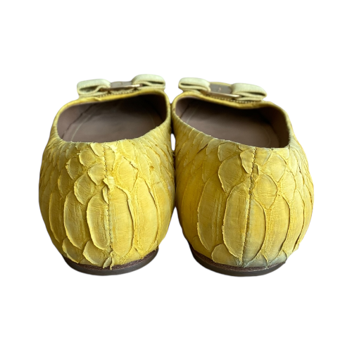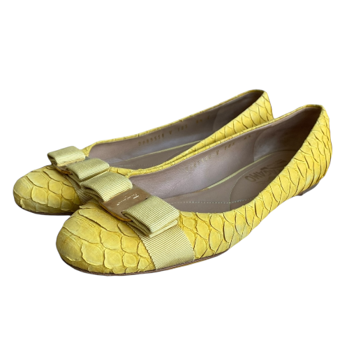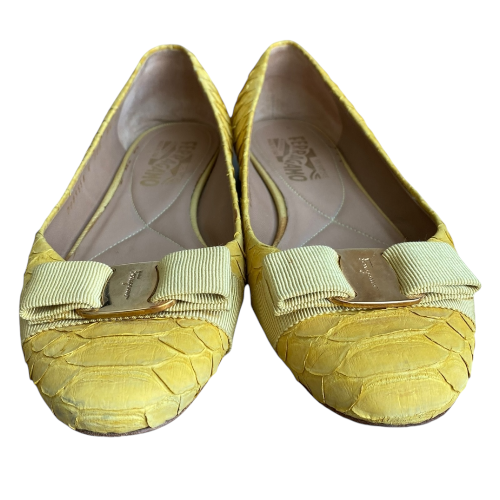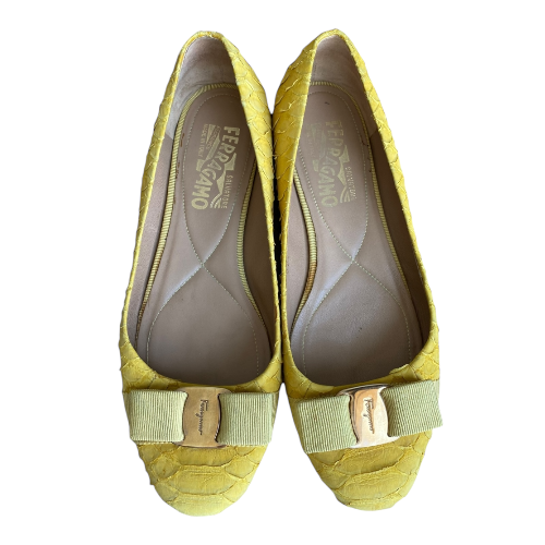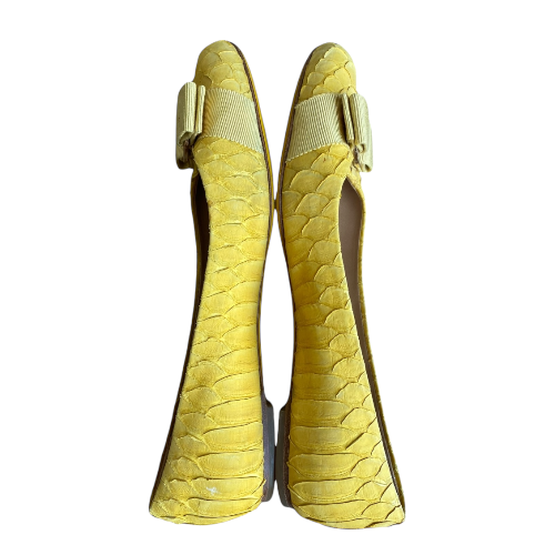 SALVATORE FERRAGAMO Yellow Python Suede Varina Ballet Flats, Size 36.5