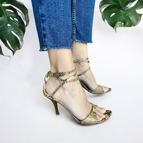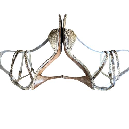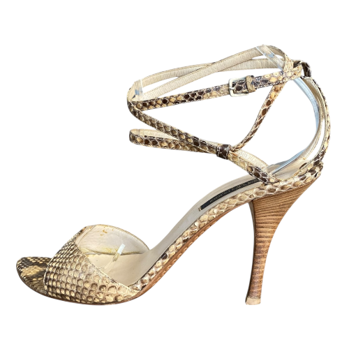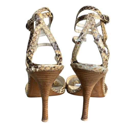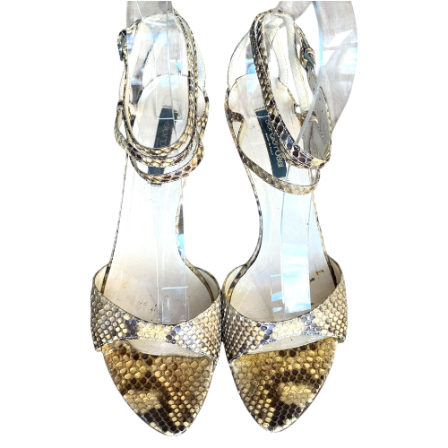 SERGIO ROSSI Beige Python Leather Ankle Strap Heeled Sandals, Size 40