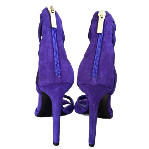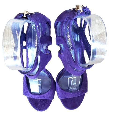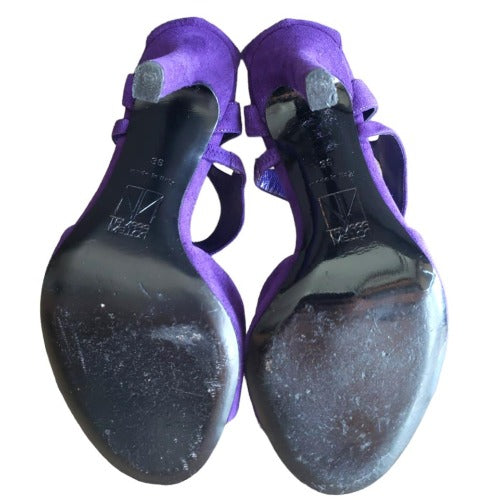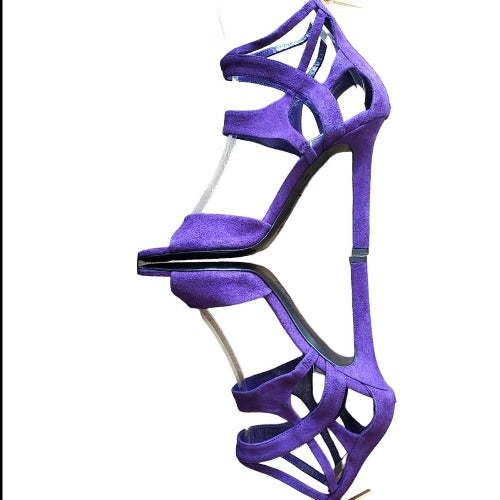 TAMARA MELLON Fatale Purple Suede Strappy Open Toe Caged Sandals, Size 36