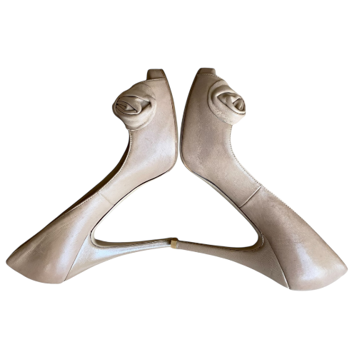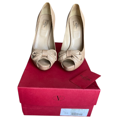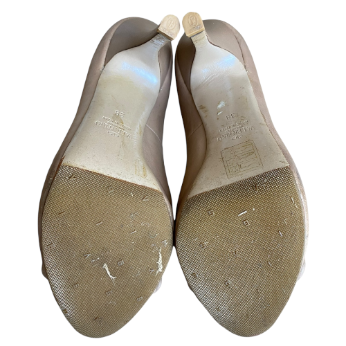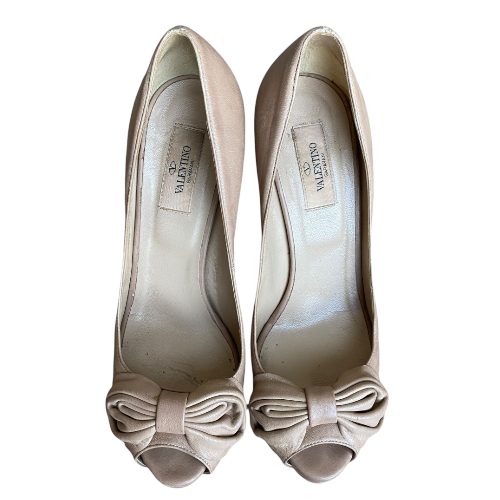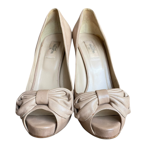 VALENTINO GARAVANI Taupe Leather Bow Detail Peep Toe Platform Pumps, Size 39