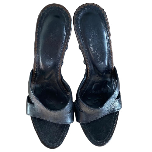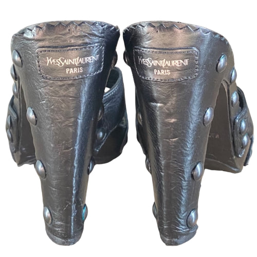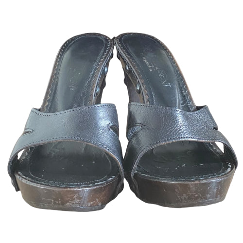 YVES SAINT LAURENT Black Leather Strappy, Wood Clog Platform Mules, Size 38
